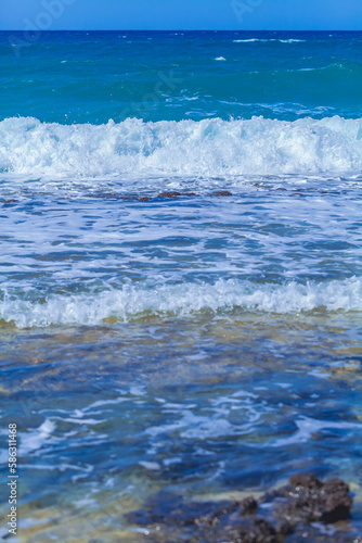 Fototapeta premium Sea waves with foam off the coast of a tropical island