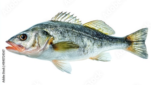 © Serhii, Obraz premium Seabass Fish on a Pristine White Background - Fresh Seafood for Cooking and Eating