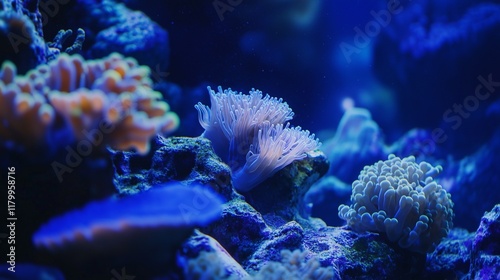© Olena, Naklejka premium Seabed. Background with corals and fish.