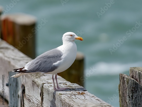 © BISO, Fototapeta premium seabird resting on wooden structure