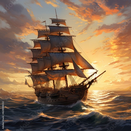 © Andrii, Fototapeta premium Seafaring Explorers: Maritime Adventure on the High Seas. Generative AI