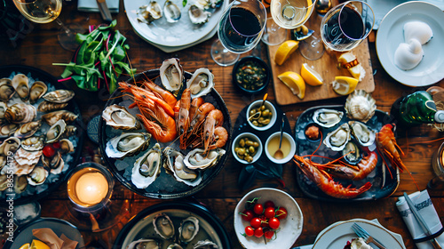 © Володимир Кучмійов, Fototapeta premium Seafood and oysters on the table