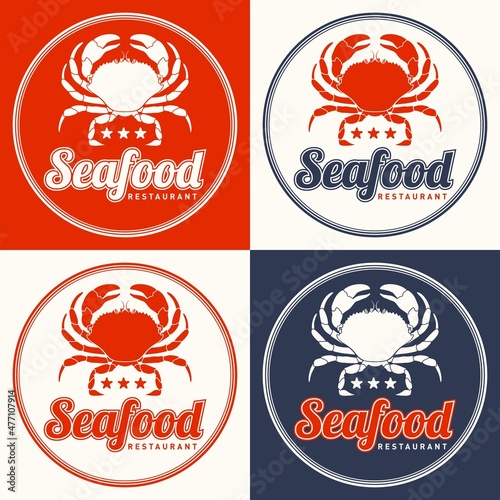 Fototapeta premium Seafood restaurant logo vector illustration. Market emblem, crab silhouette