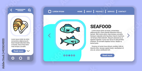 Fototapeta premium Seafood web banner and mobile app kit. Outline vector illustration. Creative idea concept