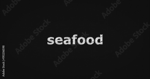 Obraz premium Seafood word on grey background.