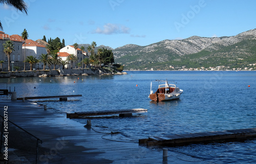 © zatletic, Fototapeta premium Seafront view at picturesque medieval Dalmatian town Korcula, Croatian culture and historic destination.
