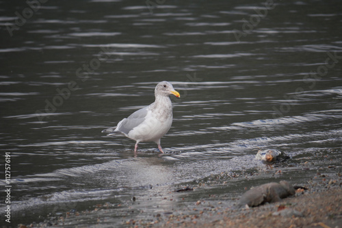Fototapeta premium Seagull at Kilby Park Campground during a fall season in Harrison Mills,...
