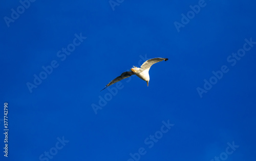 © FellowNeko, Obraz premium Seagull bird during flight very close frame
