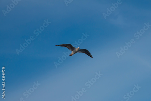 Obraz premium Seagull bird flight on a marine.