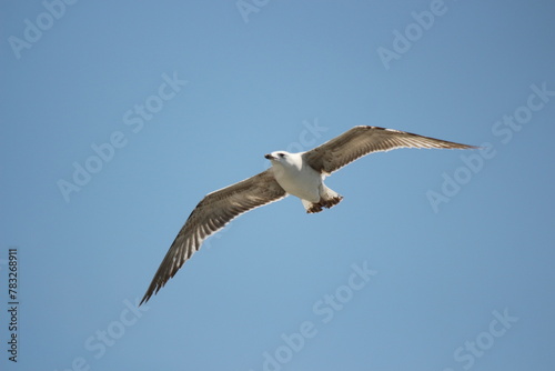 © mushtaq, Fototapeta premium seagull bird flying in blue sky