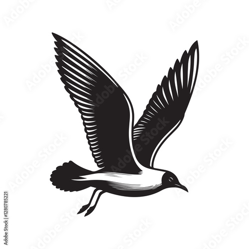 Obraz premium Seagull bird Silhouette Vector Illustration, Solid White Background.