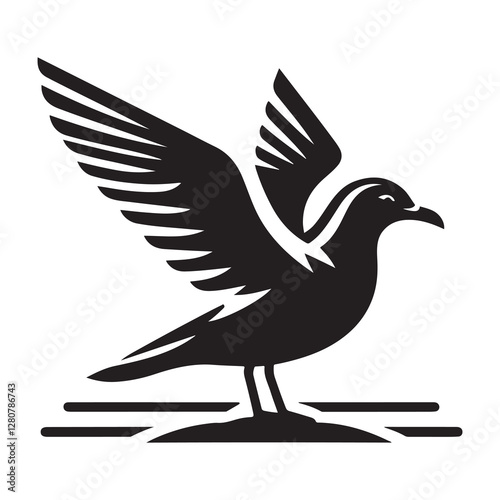 © Faysal, Obraz premium Seagull bird Silhouette Vector Illustration, Solid White Background.