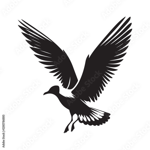 Naklejka premium Seagull bird Silhouette Vector Illustration, Solid White Background.