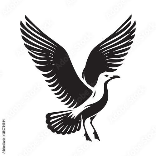 Obraz premium Seagull bird Silhouette Vector Illustration, Solid White Background.