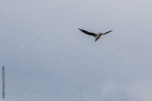 Fototapeta premium Seagull flies with a blue sky