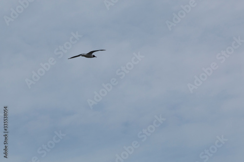 Fototapeta premium Seagull flies with a blue sky