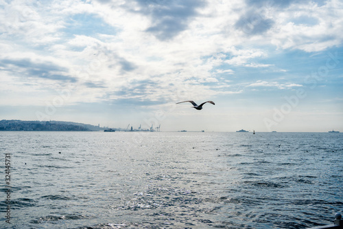 Fototapeta premium Seagull flight over the sea