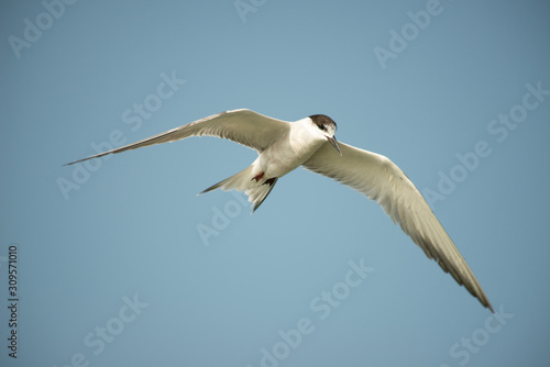 Fototapeta premium Seagull flying in blue sky.