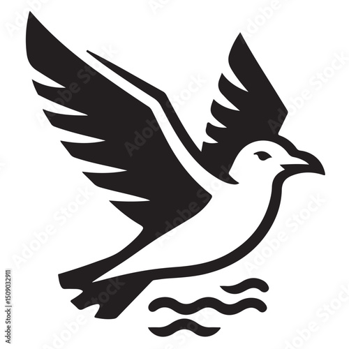 Obraz premium Seagull flying in sky logo vector