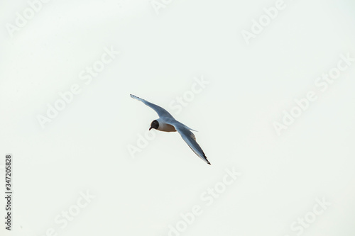 Obraz premium Seagull flying on beautiful cloudless blue sky