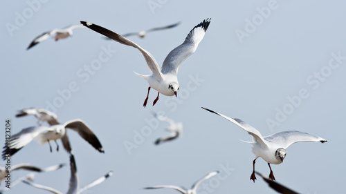 © pixs4u, Obraz premium Seagull flying on cloudy sky