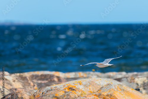 © stefanholm, Naklejka premium Seagull flying over the shoreline