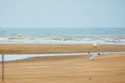 Obraz premium Seagull flying over the water