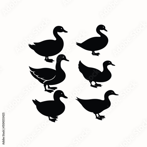 Fototapeta premium Seagull Flying Silhouette Vector Set on White Background