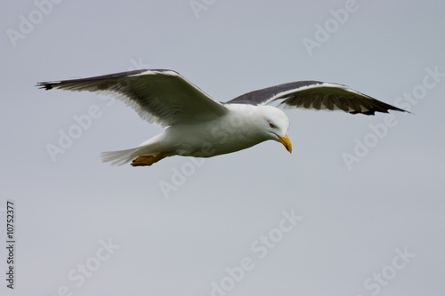 © Radomir Rezny, Obraz premium Seagull glides against grey sky