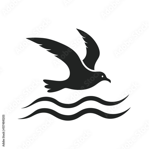 Obraz premium Seagull Gliding Over Ocean Waves Silhouette