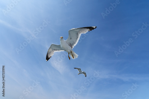 Obraz premium Seagull in flight over the sea on a background of the sky