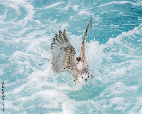 © Hamidslens, Obraz premium Seagull in Flight taking off from the water leve;