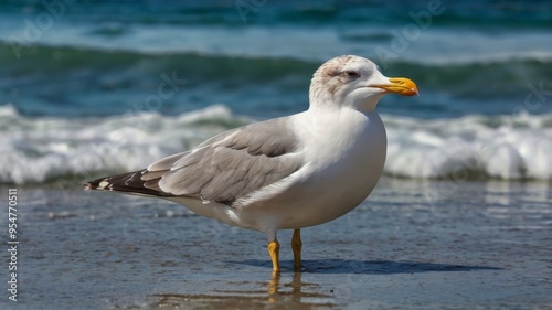 Fototapeta premium Seagull in ocean closeup