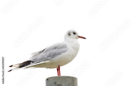 Obraz premium Seagull isolated on white, sitting on a pole