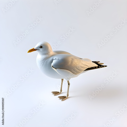 © Tark, Fototapeta premium Seagull metallic 3D image of white seagull on white background. Generative AI