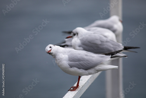 © Sarah, Fototapeta premium Seagull on a pontoon