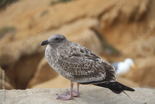 Fototapeta premium seagull on the beach, Larus occidentalis Young bird アメリカオオセグロカモメ, 幼鳥,
