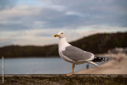 Fototapeta premium Seagull on the beach, sunset - Rugen Germany
