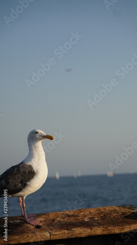 © Brett, Fototapeta premium seagull on the pier watching the sunset