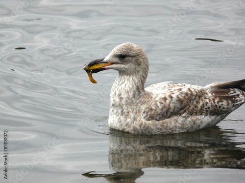 © Rafal, Fototapeta premium Seagull on the water with something in its beak