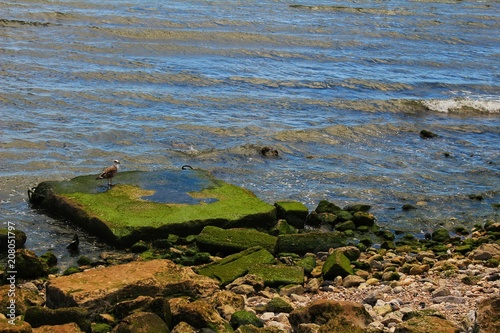 © SoniaBonet, Fototapeta premium Seagull perched on a stone with algae