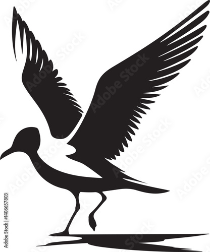 © Shirin, Fototapeta premium Seagull silhouette. Isolated seagull on white background. Bird
