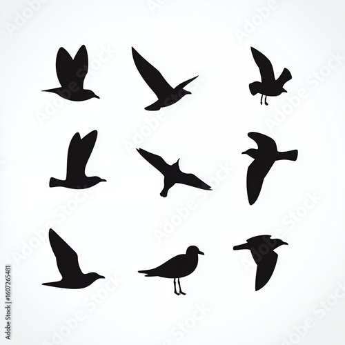 Fototapeta premium Seagull Silhouettes Create Striking Black Shadow Art Display