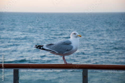 © Gestur, Obraz premium Seagull sitting on a guardrail