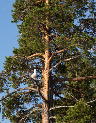 © karmad, Fototapeta premium Seagull sitting on a tree. Close up