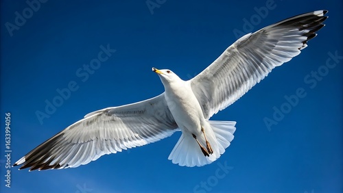 Fototapeta premium Seagull soaring gracefully against a vibrant blue sky