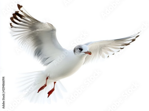 Fototapeta premium Seagull soaring gracefully in a clear sky with outstretched wings