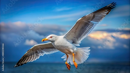 Fototapeta premium Seagull soaring gracefully in flight, seagull, bird, flying, wings, freedom,...