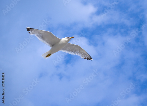 Fototapeta premium Seagull soaring in the blue sky