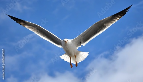 Fototapeta premium Seagull soaring on deep blue ocean.